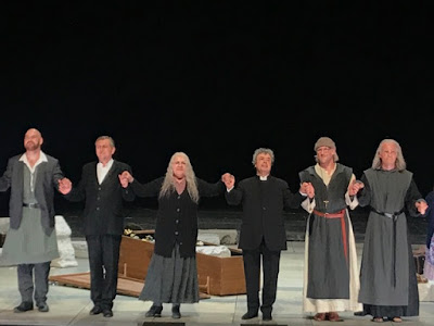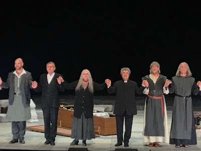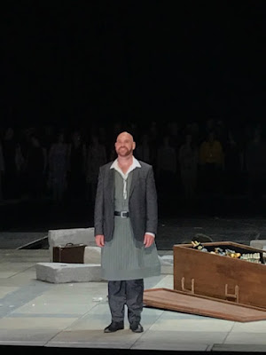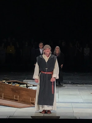 comes in with his "aria" and the pilgrims are now poor people who, on
